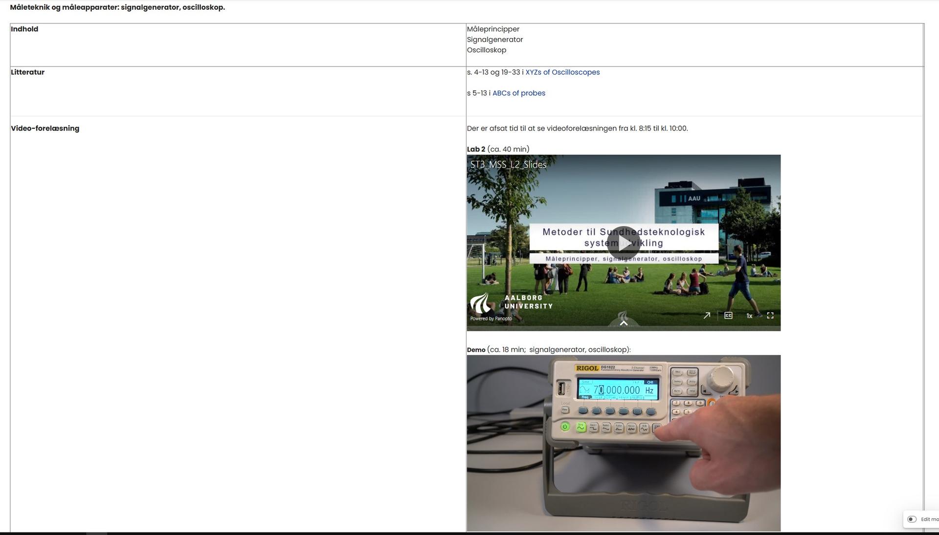 If it is a laboratory session, videos are embedded directly in the schedule. For example, this may appear as follows: